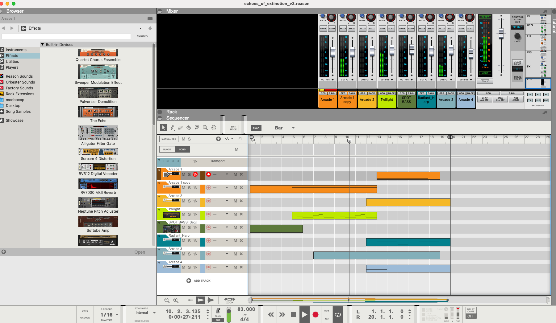 (of course this takes a lot longer to get the project done). There are some tools that I use in Reason that help with creating music and scores for a project like this. So I developed the music first and once that was done I used that to inform what the imagery could start to look like.